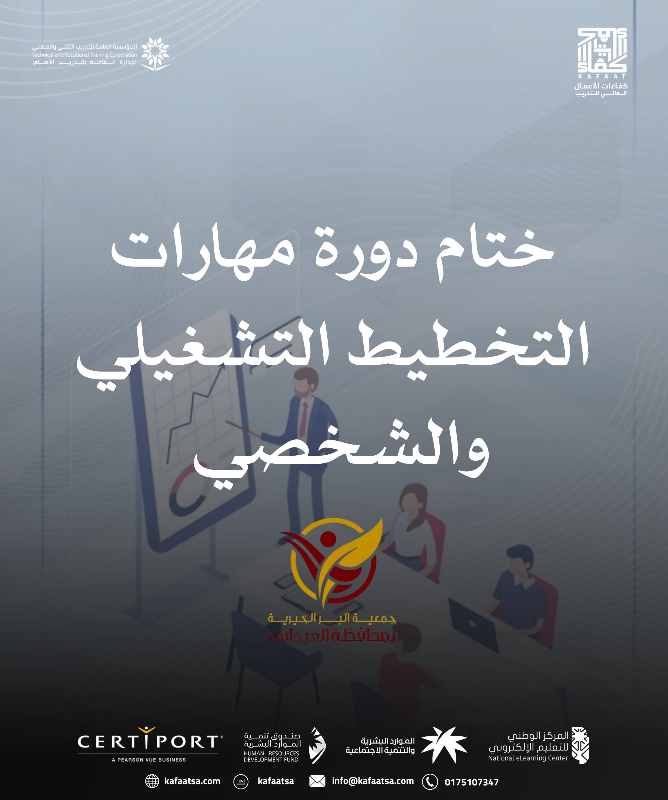 أنهى معهد كفاءات الأعمال العالي للتدريب اليوم بنجاح تقديم دورة “مهارات التخطيط التشغيلي والشخصي” لصالح مستفيدي جمعية البر الخيرية بمحافظة العيدابي، وذلك ضمن مسارات برنامج تأهيل وتدريب وتمكين الأيتام – 2026